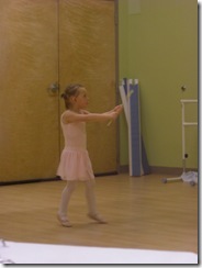 I finally gave in! Goose absolutely loves to dance. She dances around the house all the time whether the music is on or not. Here she is on her first day of ballet and tap…..