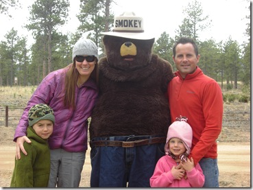 Each year, we head up to the mountains to cut down our fresh Christmas tree. This has been a family tradition since the 1st year we moved to CO. It is a day we cherish! We always stop by to take a pic with Smokey as we enter into the National Forest cutting area. And then off we go……
